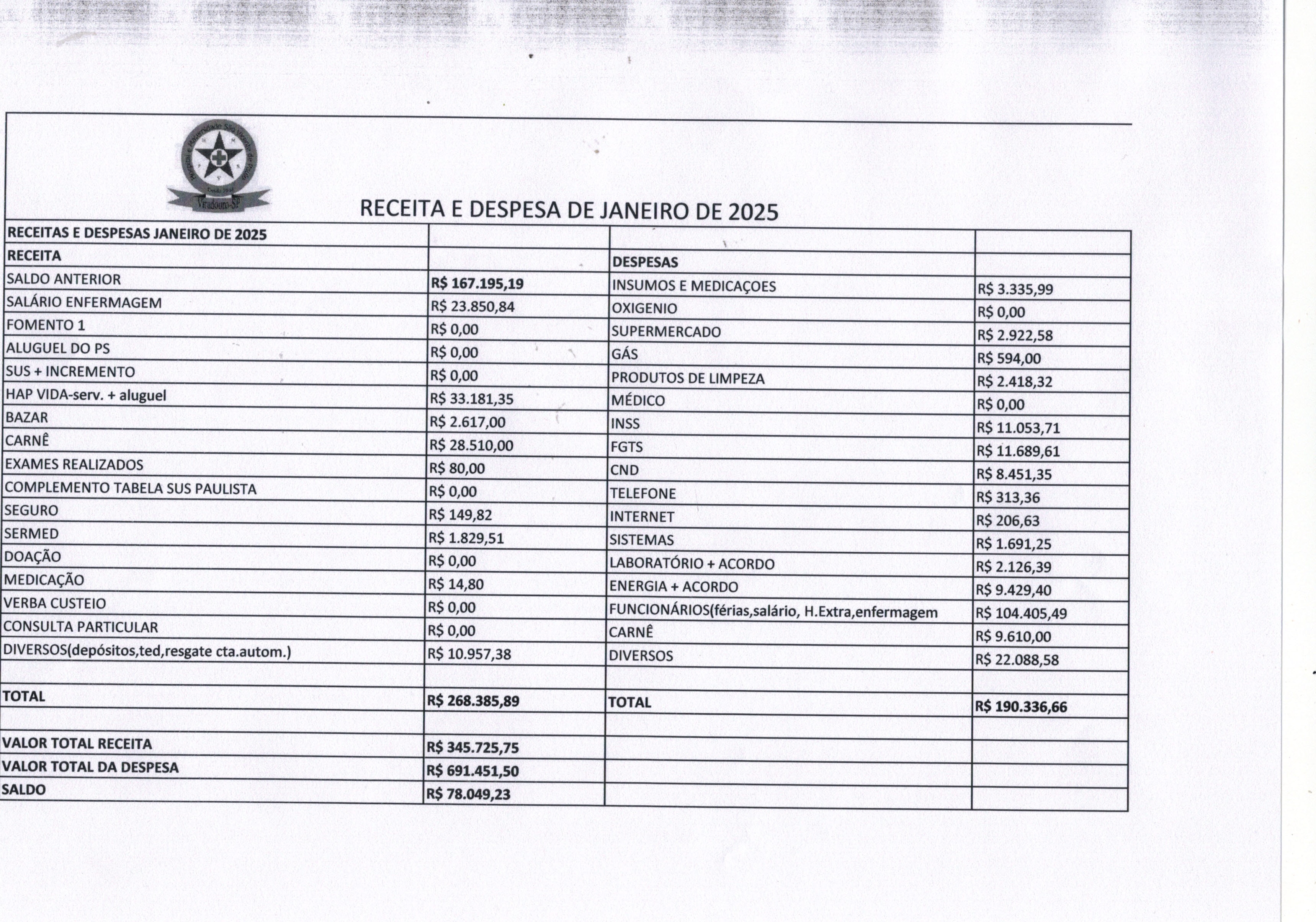 RECEITAS E DESPESAS JANEIRO 2025RECEITAS E DESPESAS JANEIRO 2025 AnexosRECEITAS E DESPESAS JANEIRO 2025 Download Visualizar |