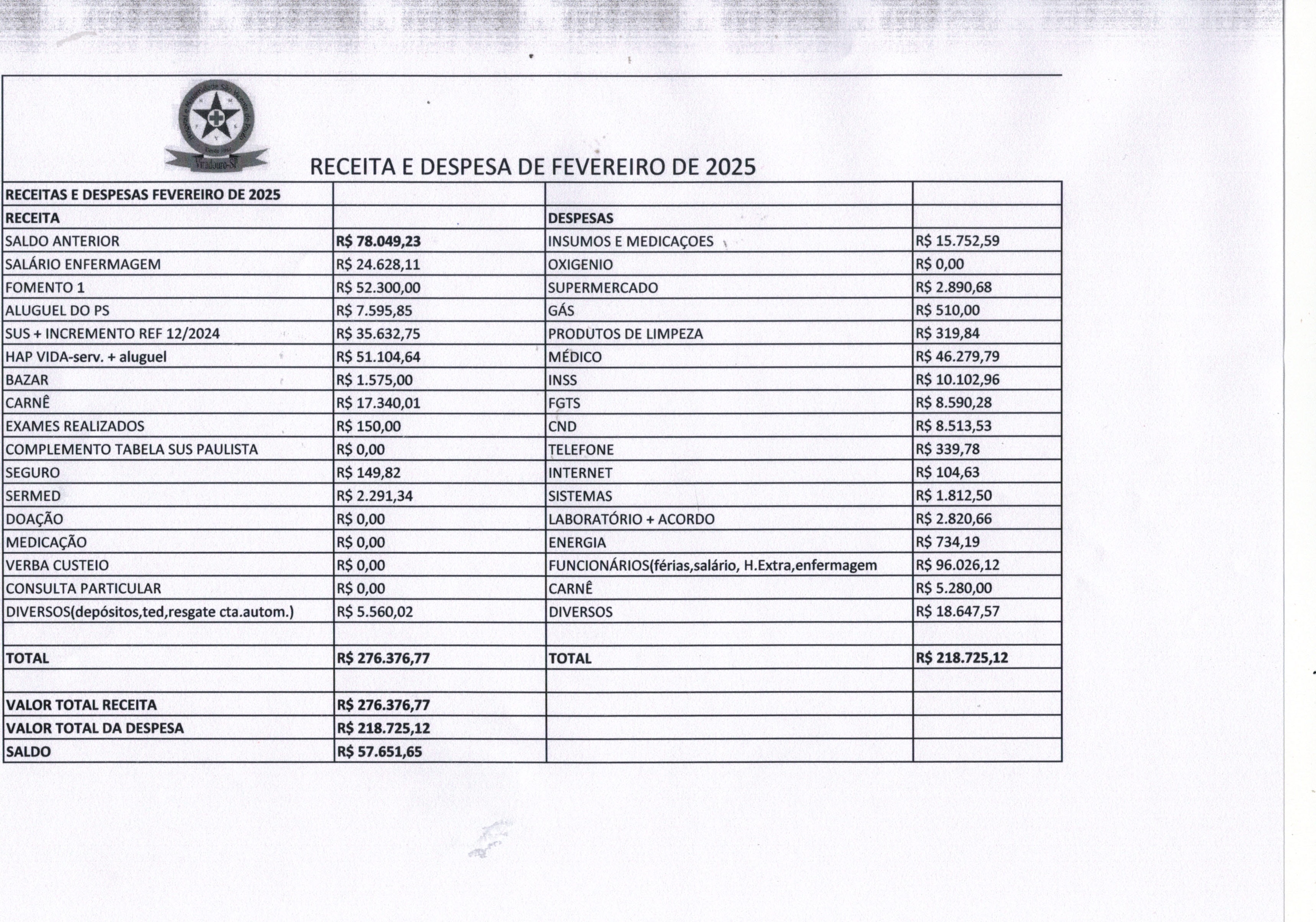 RECEITAS E DESPESAS FEVEREIRO 2025RECEITAS E DESPESAS FEVEREIRO 2025 AnexosRECEITAS E DESPESAS FEVEREIRO 2025 Download Visualizar |