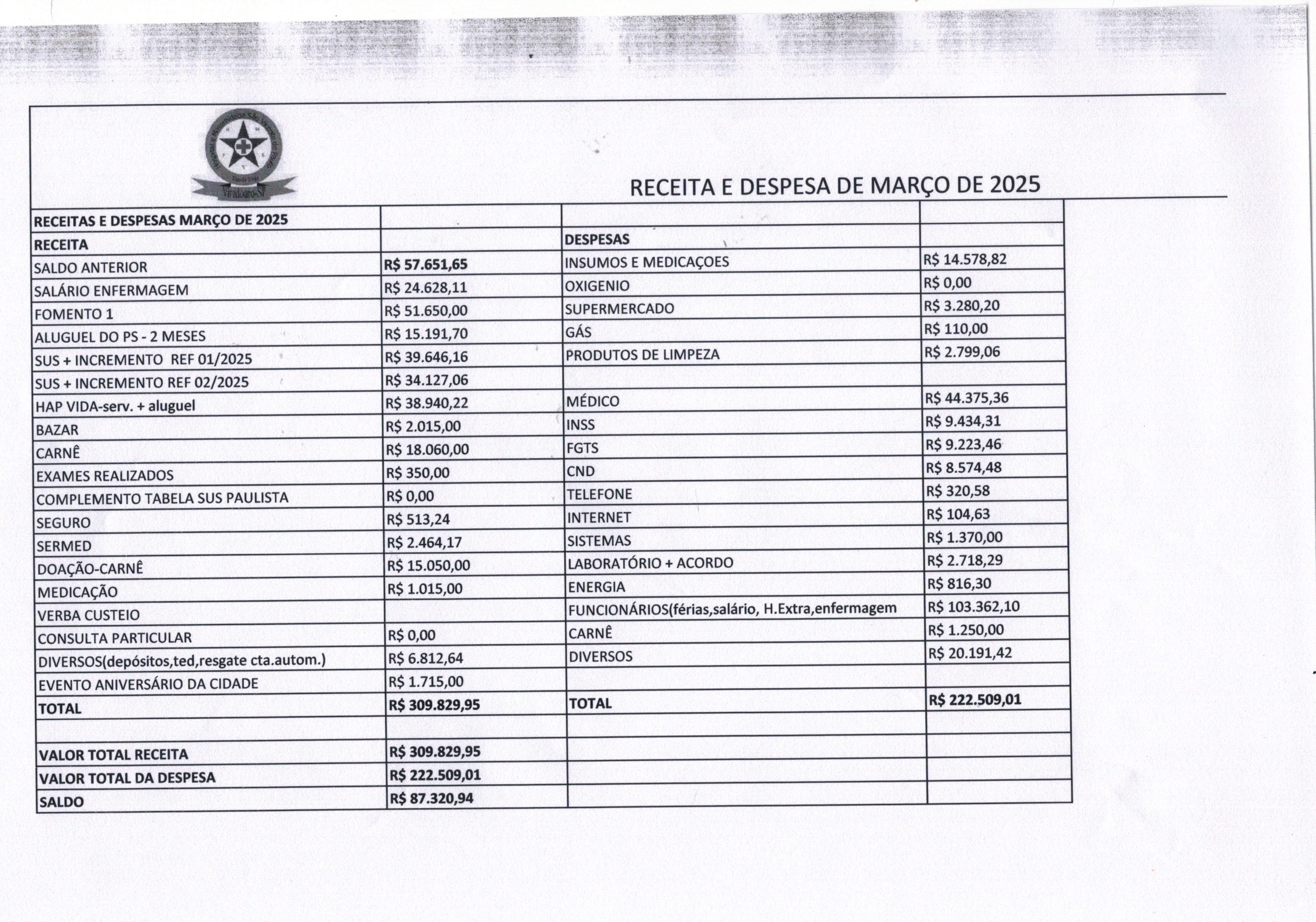 RECEITAS E DESPESAS MARÇO 2025RECEITAS E DESPESAS MARÇO 2025 AnexosRECEITAS E DESPESAS MARÇO 2025 Download Visualizar |