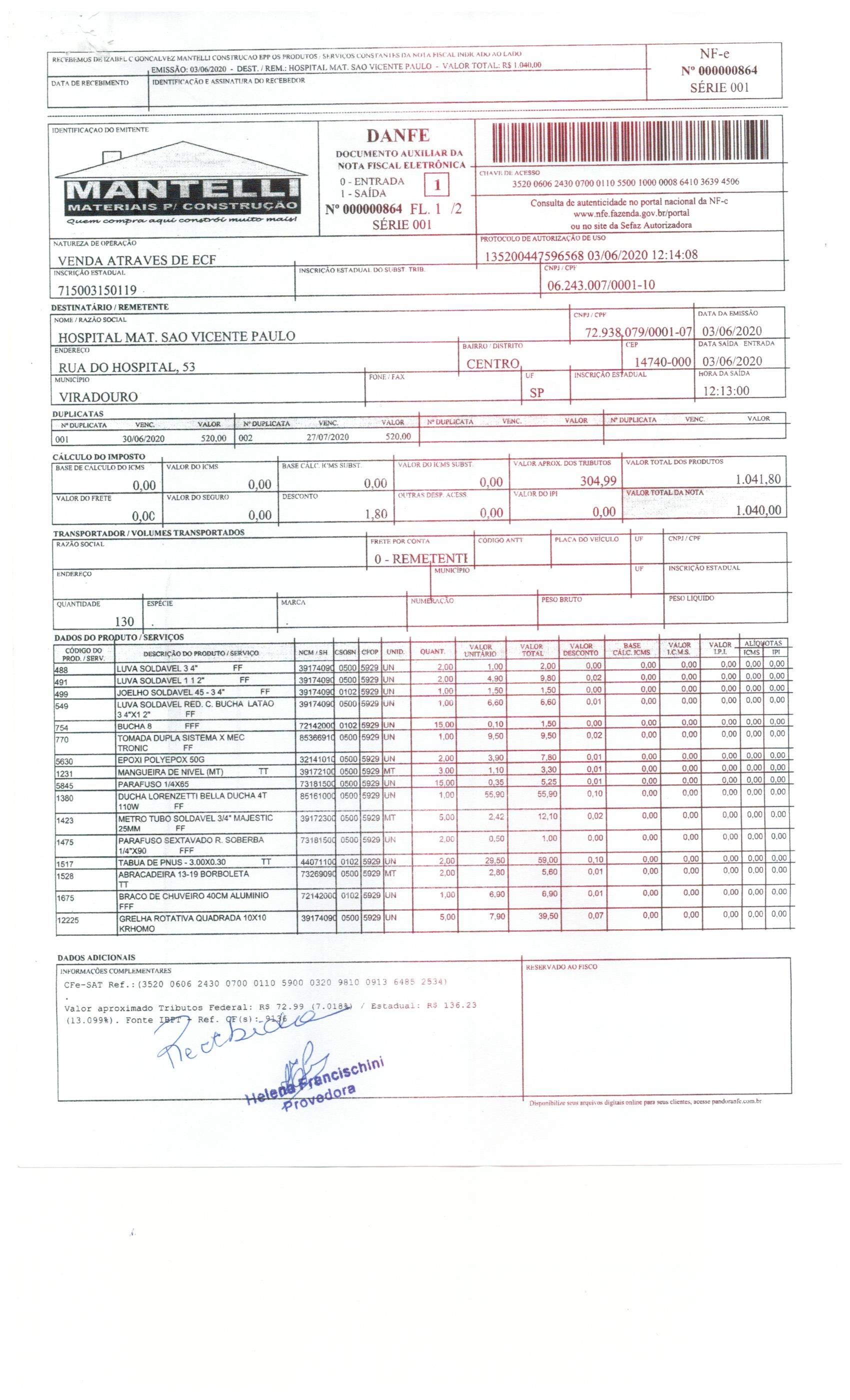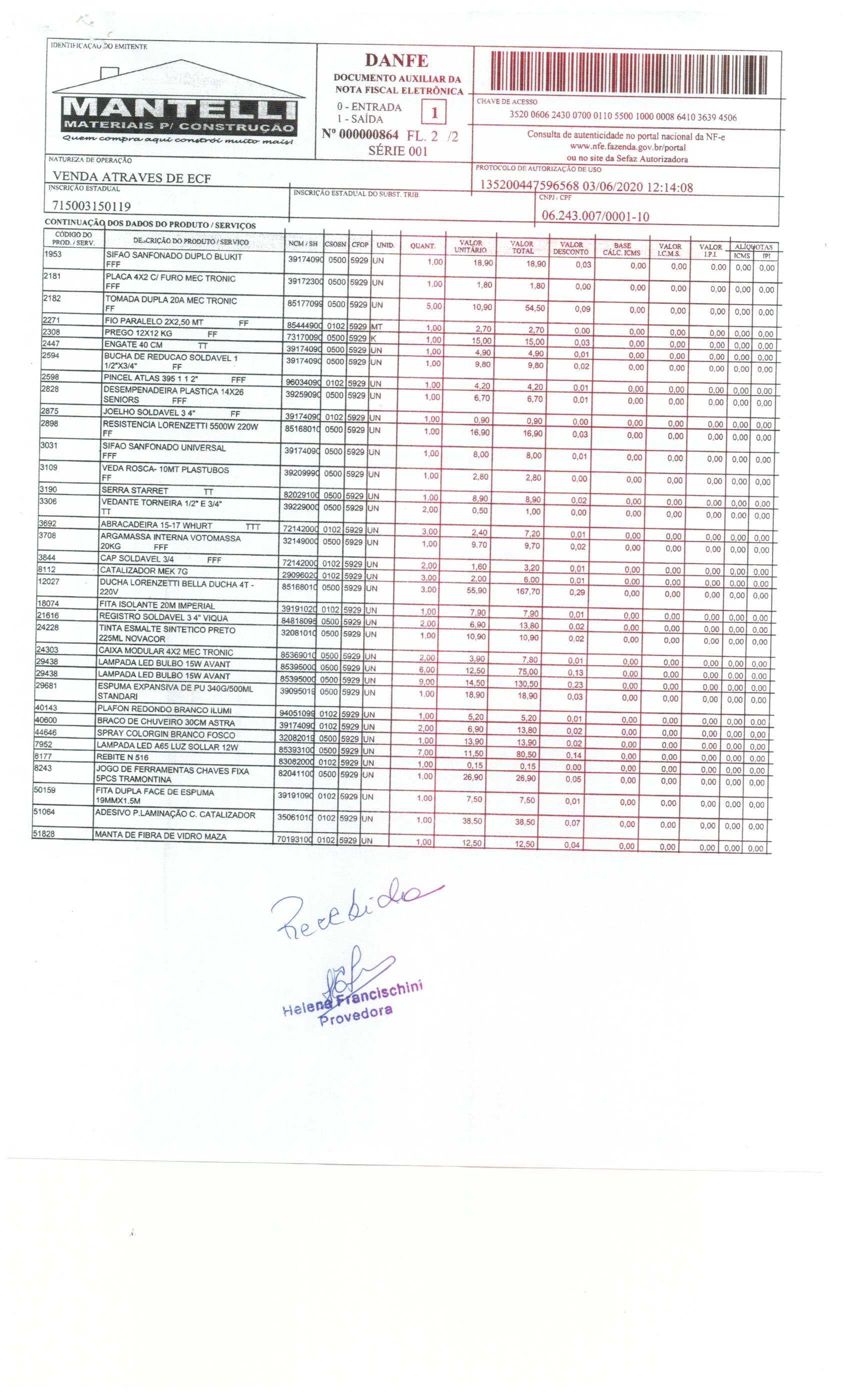 Materiais | Nota 864Compra de materiais e equipamentos. AnexosPagamento Parcela 2/2 Download Visualizar pagamento Download Visualizar Mantelli Download Visualizar Mantelli Download Visualizar |