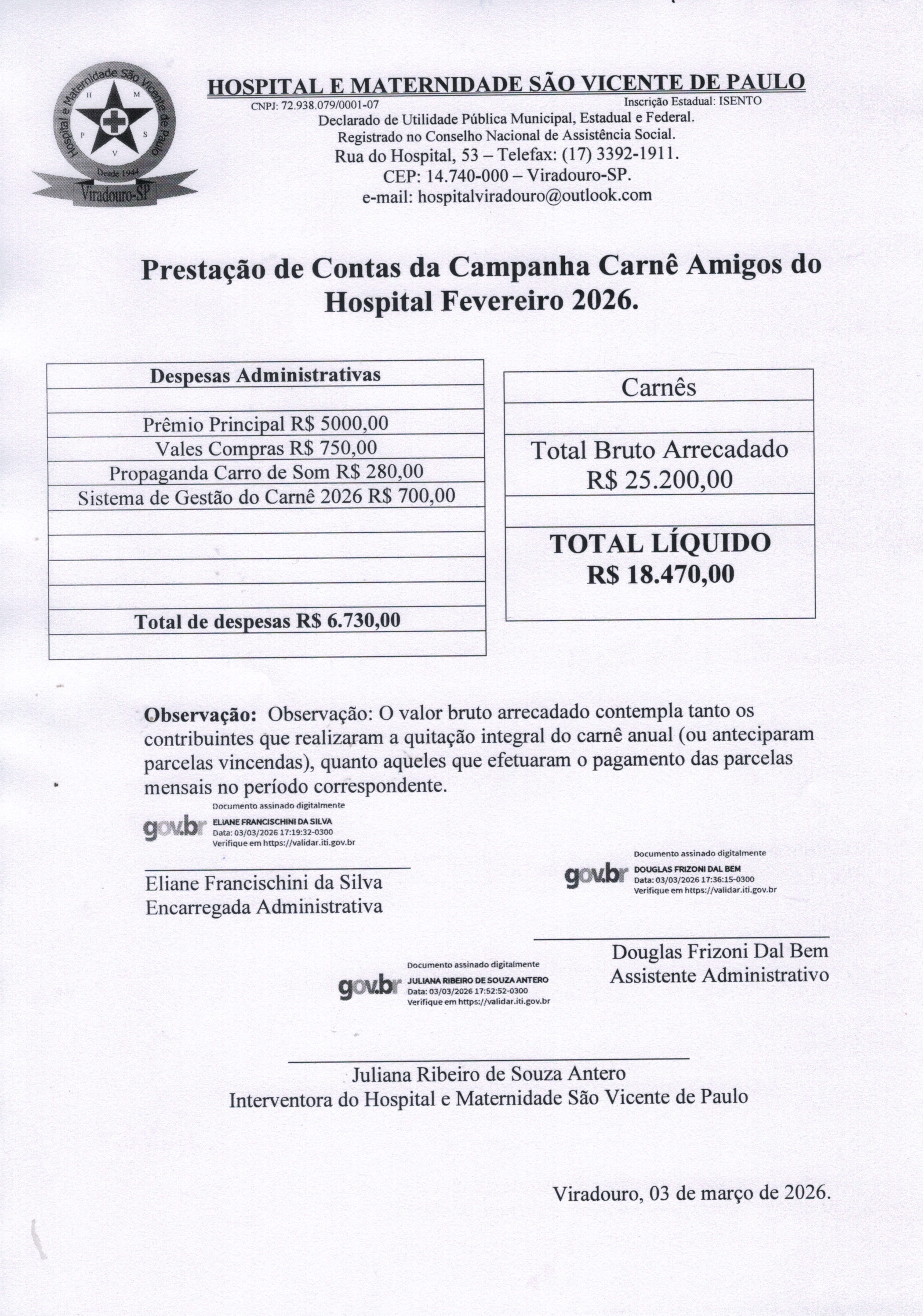 BALANCETE DE CARNÊS REFERENTE A FEVEREIRO 2026BALANCETE DE CARNÊS REFERENTE A FEVEREIRO 2026 AnexosBALANCETE DE CARNÊS REFERENTE A FEVEREIRO 2026 Download Visualizar |
