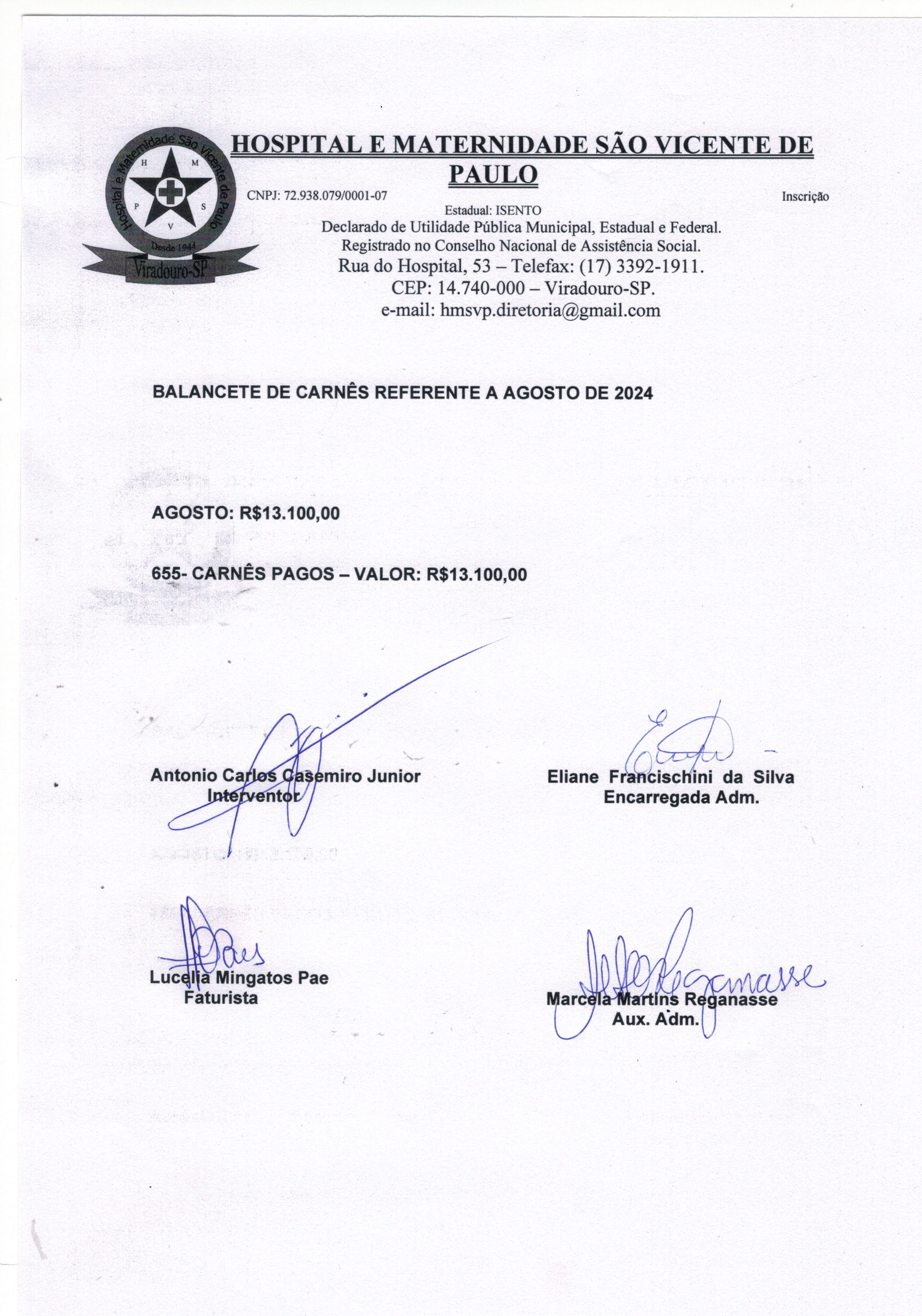 BALANCETE DE CARNÊS REFERENTE A AGOSTO 2024BALANCETE DE CARNÊS REFERENTE A AGOSTO 2024 AnexosBALANCETE DE CARNÊS REFERENTE A AGOSTO 2024 Download Visualizar |