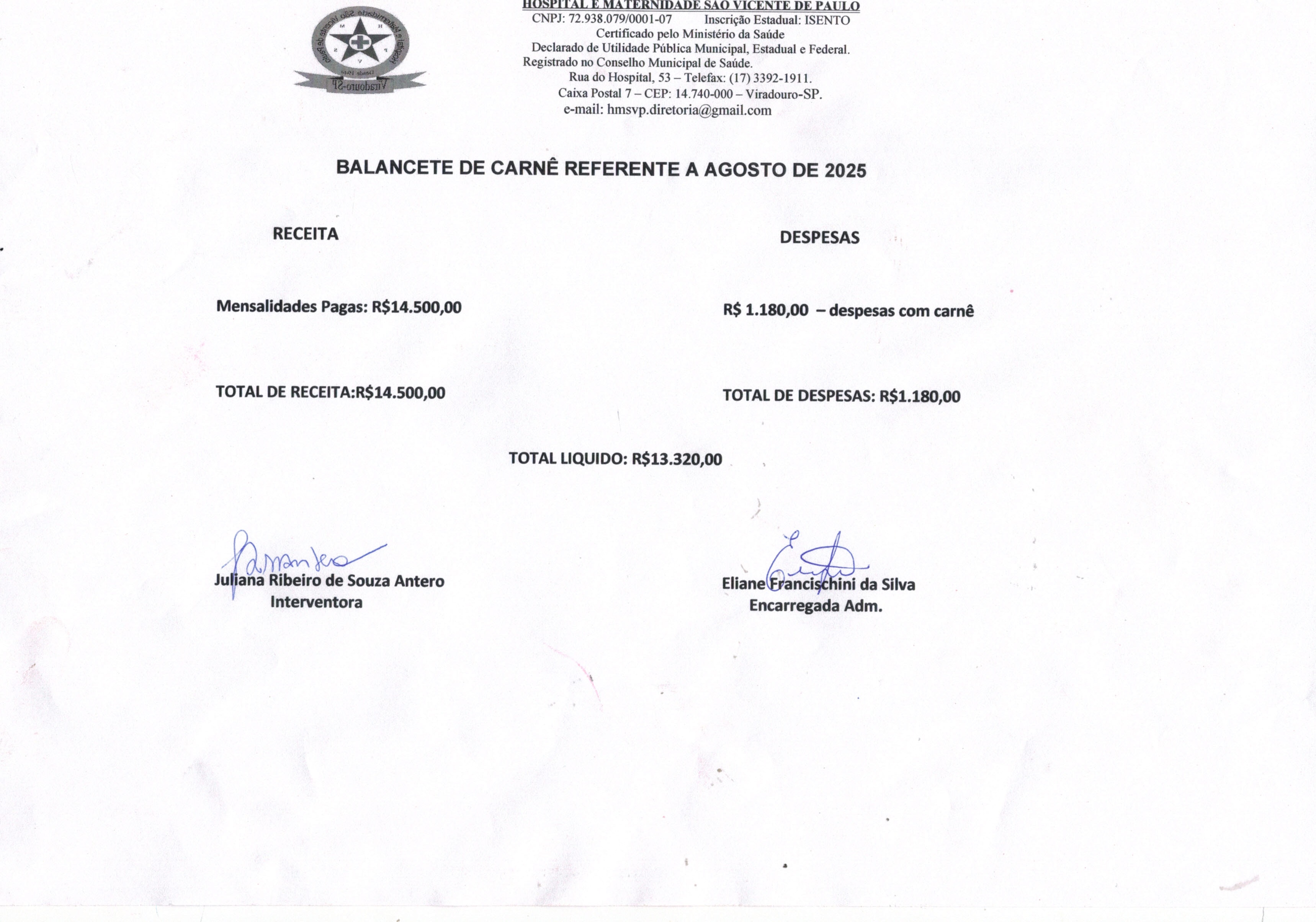 BALANCETE DE CARNÊS REFERENTE A AGOSTO DE 2025BALANCETE DE CARNÊS REFERENTE A AGOSTO DE 2025 AnexosBALANCETE DE CARNÊS REFERENTE A AGOSTO DE 2025 Download Visualizar |