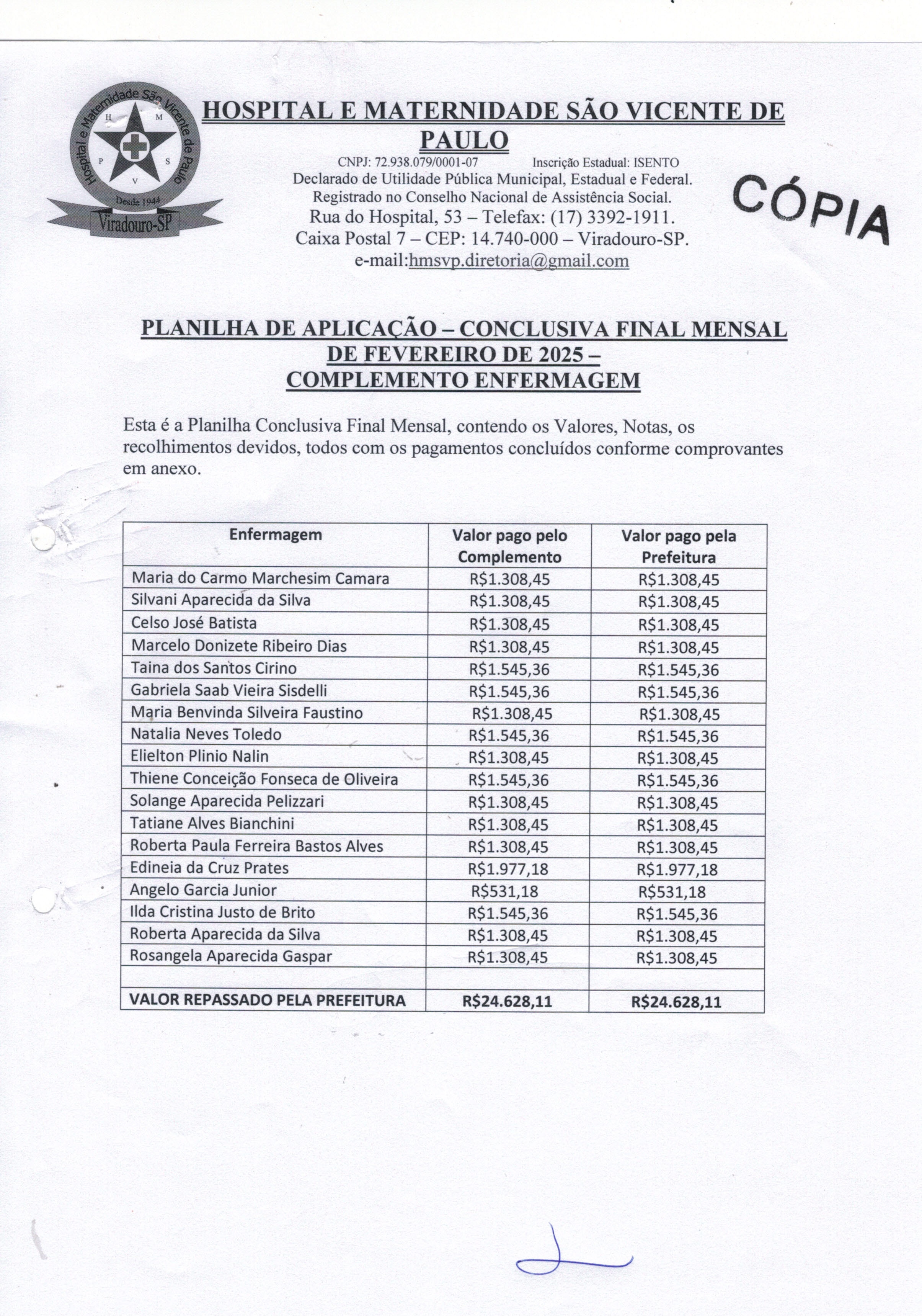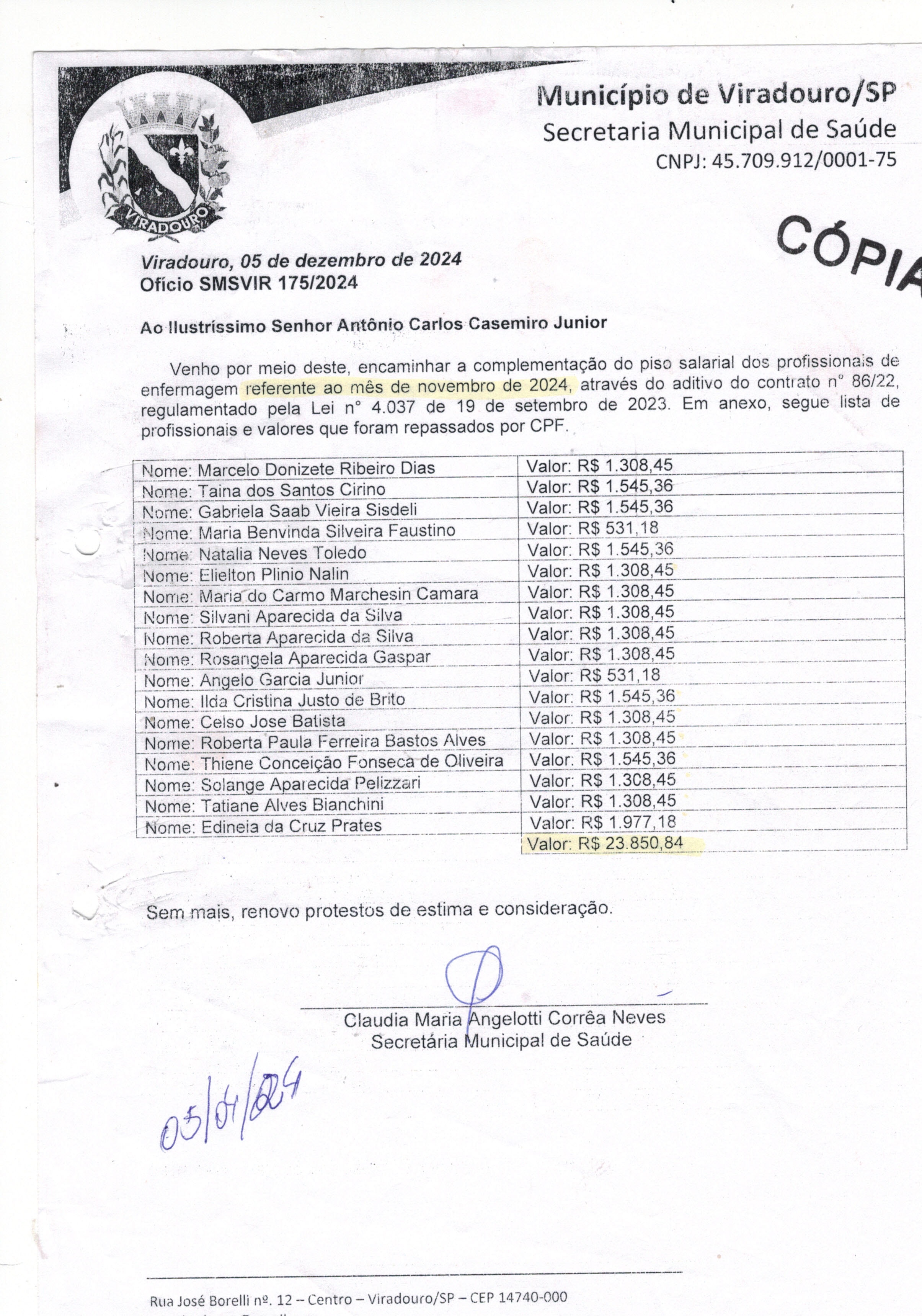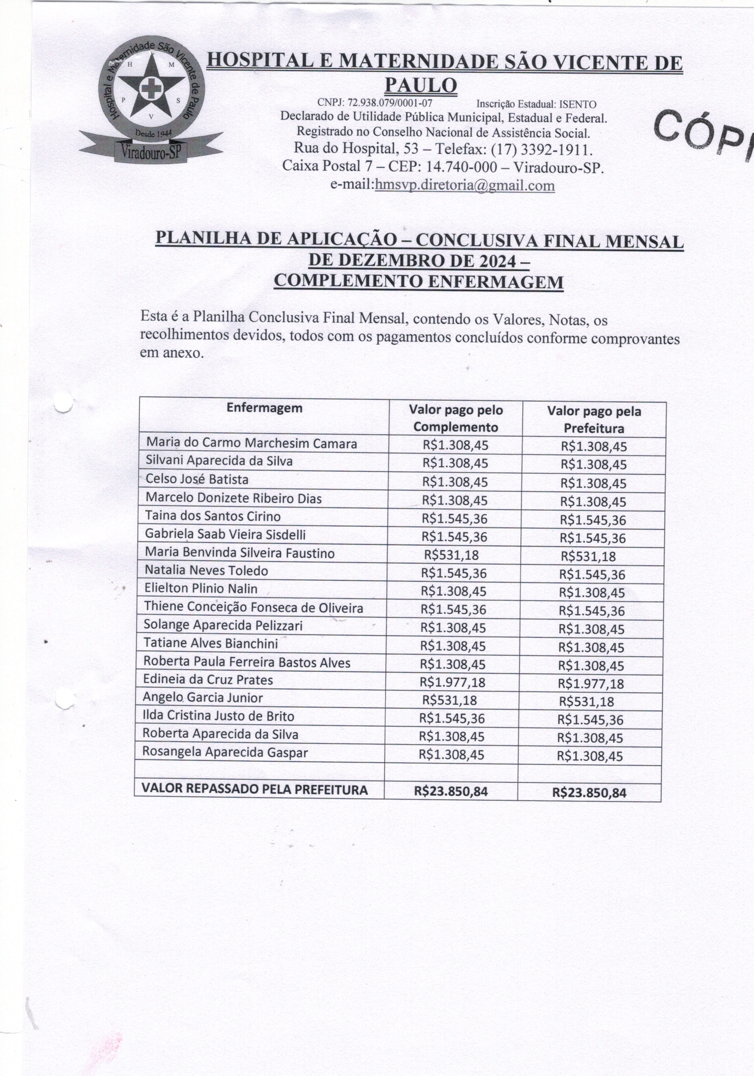 COMPLEMENTAÇÃO PISO SALARIAL ENFERMAGEM MÊS NOVEMBRO 2024COMPLEMENTAÇÃO PISO SALARIAL ENFERMAGEM MÊS NOVEMBRO 2024 AnexosCOMPLEMENTAÇÃO PISO SALARIAL ENFERMAGEM MÊS NOVEMBRO 2024 Download Visualizar |