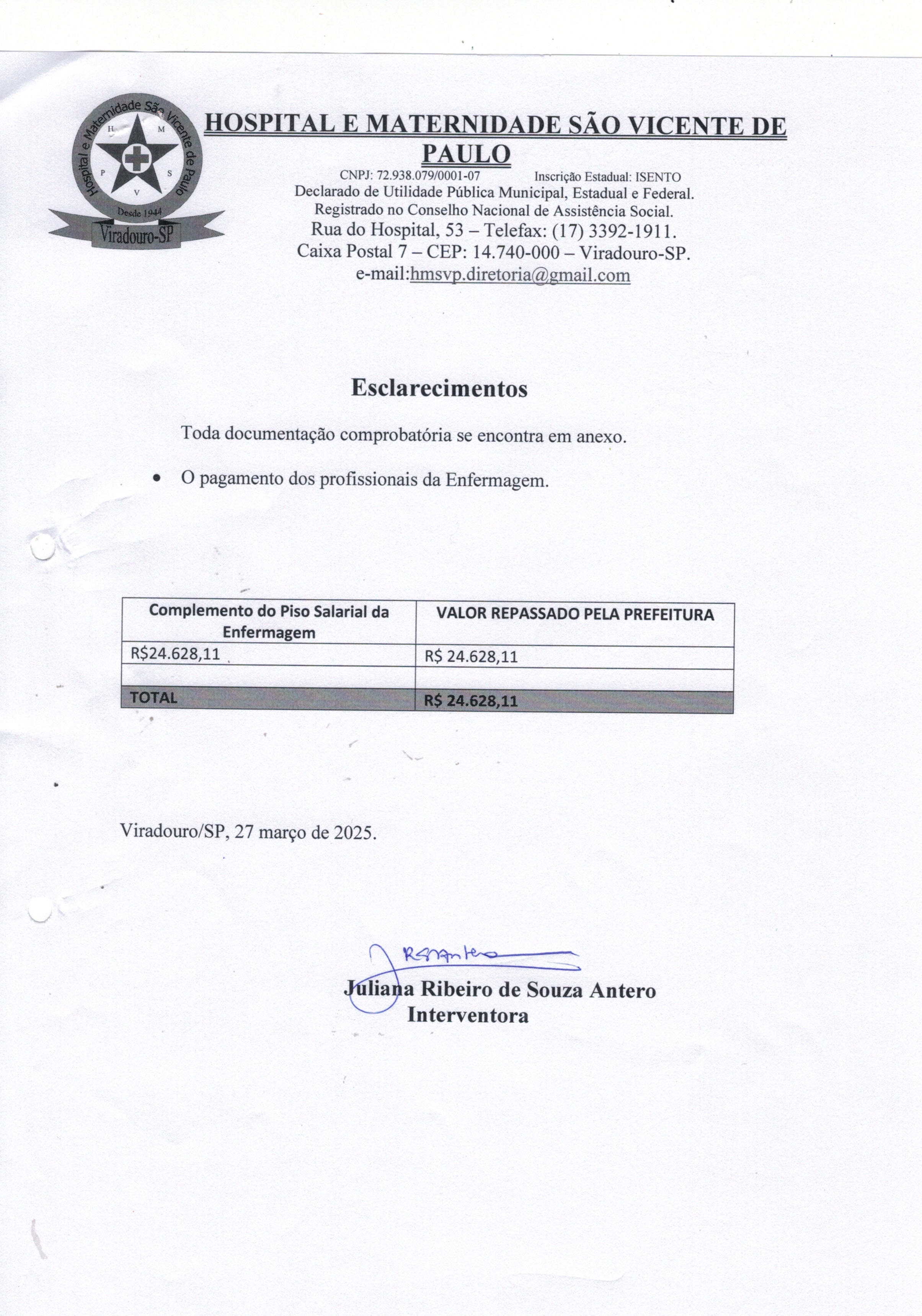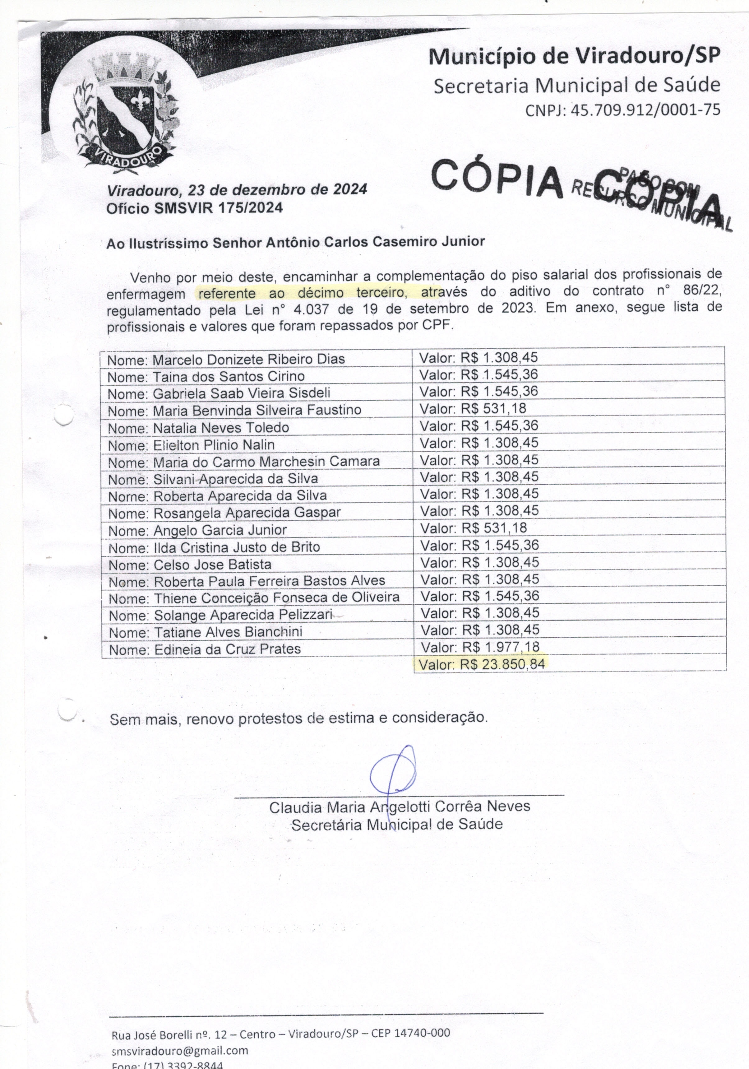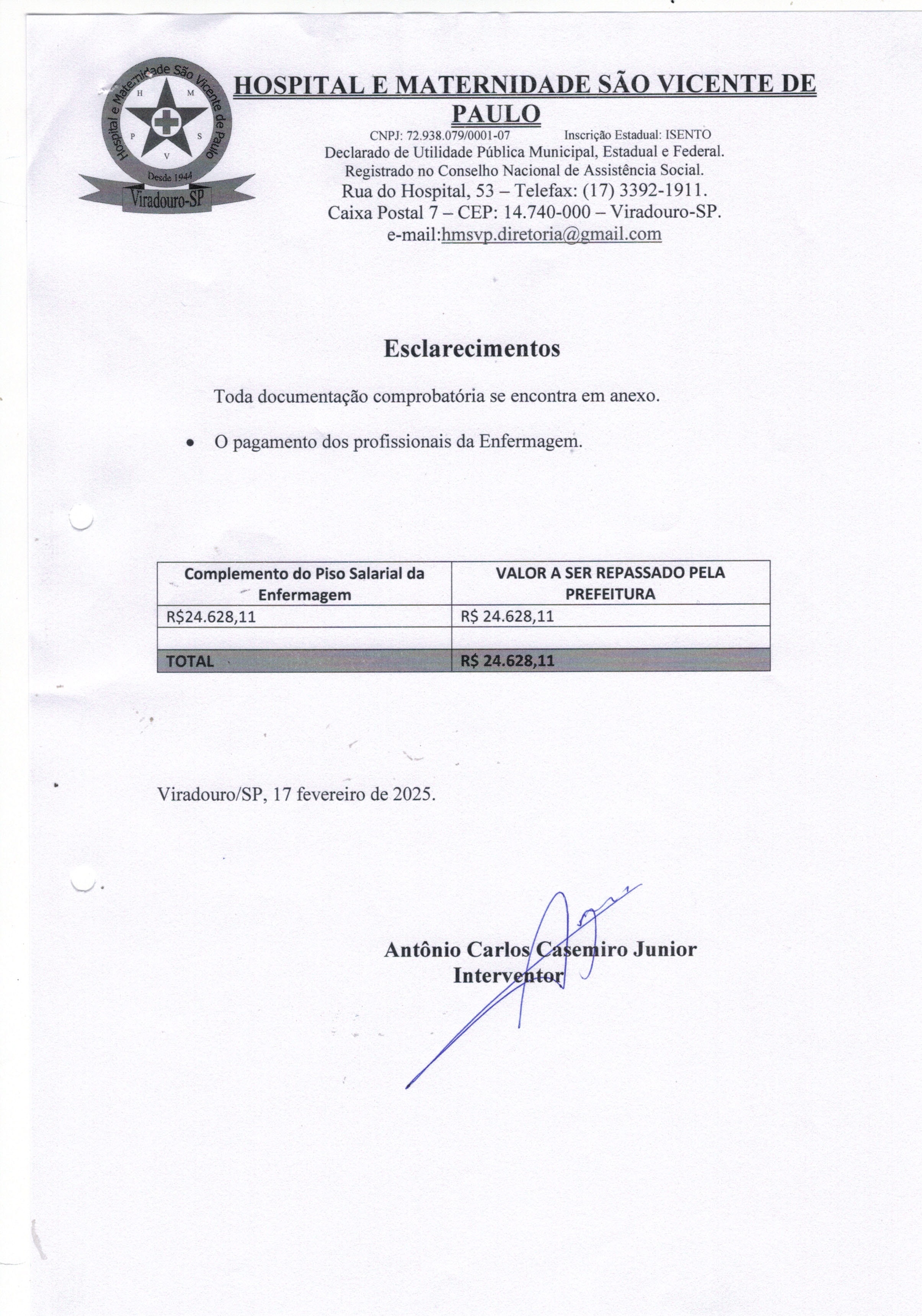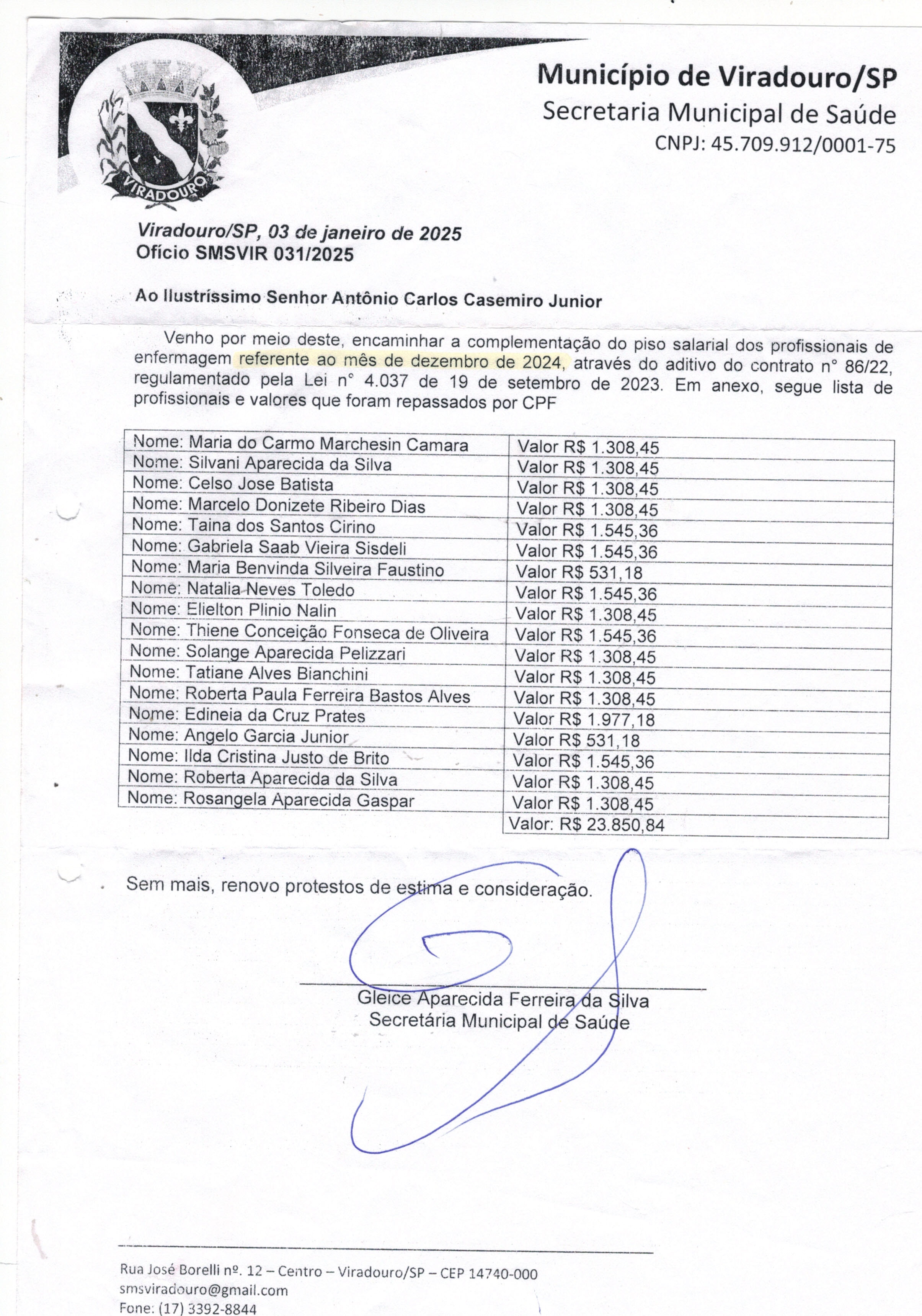 COMPLEMENTAÇÃO PISO SALARIAL ENFERMAGEM REFERENTE AO DÉCIMO TERCEIRO 2024COMPLEMENTAÇÃO PISO SALARIAL ENFERMAGEM REFERENTE AO DÉCIMO TERCEIRO 2024 AnexosCOMPLEMENTAÇÃO PISO SALARIAL ENFERMAGEM REFERENTE AO DÉCIMO TERCEIRO 2024 Download Visualizar |